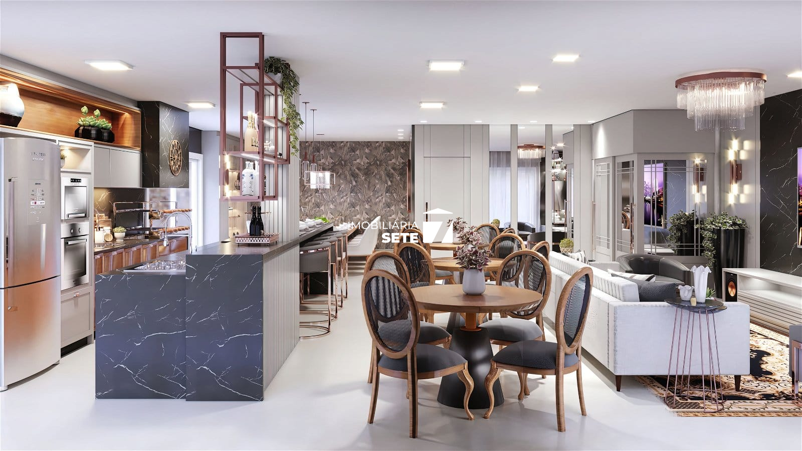 Amplo living integrado com lavabo
